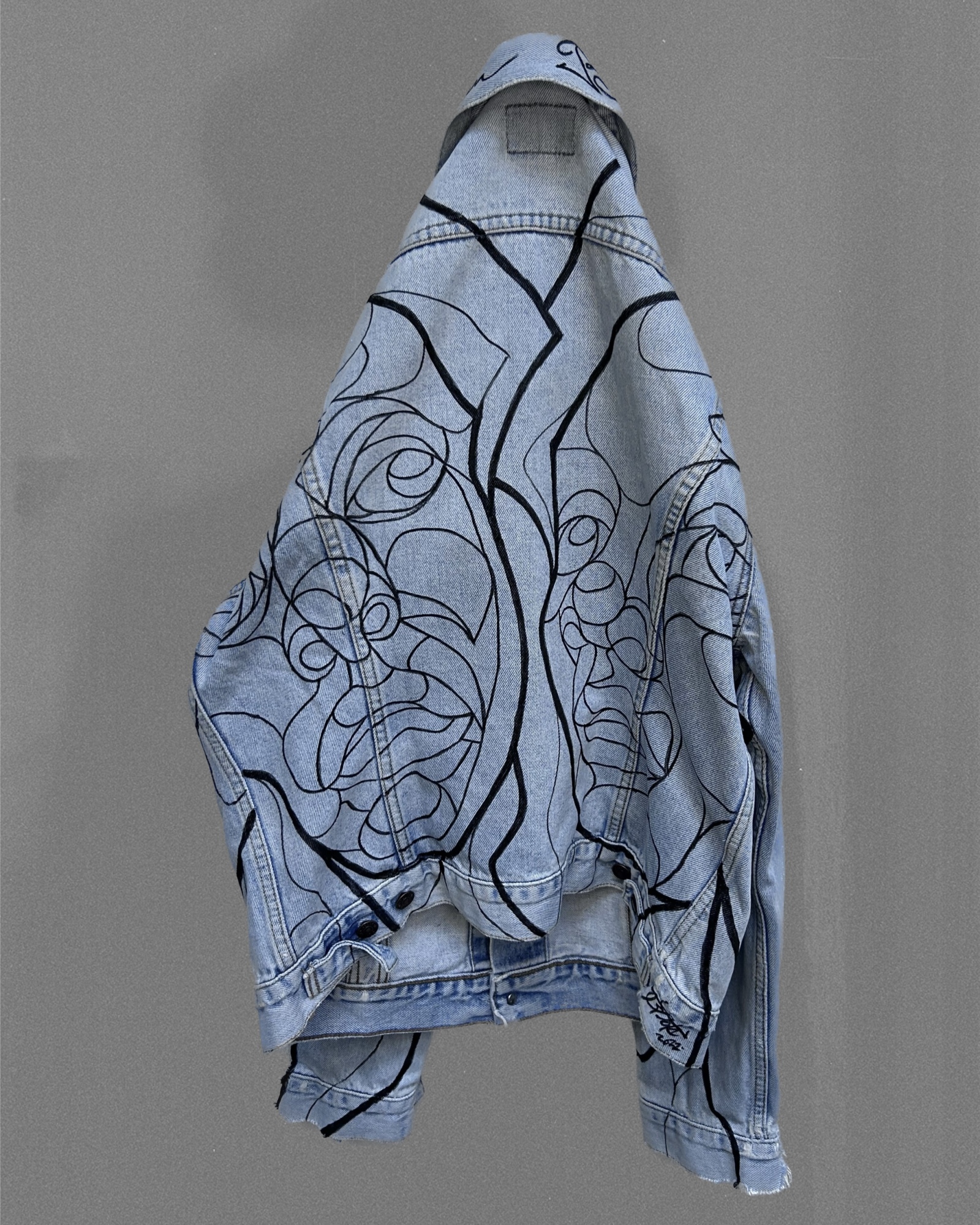 Lesalopard pós como condição a uma colaboração artística, a utilização de duas peças intemporais, a denim Jacket e o Perfecto (cabedal).